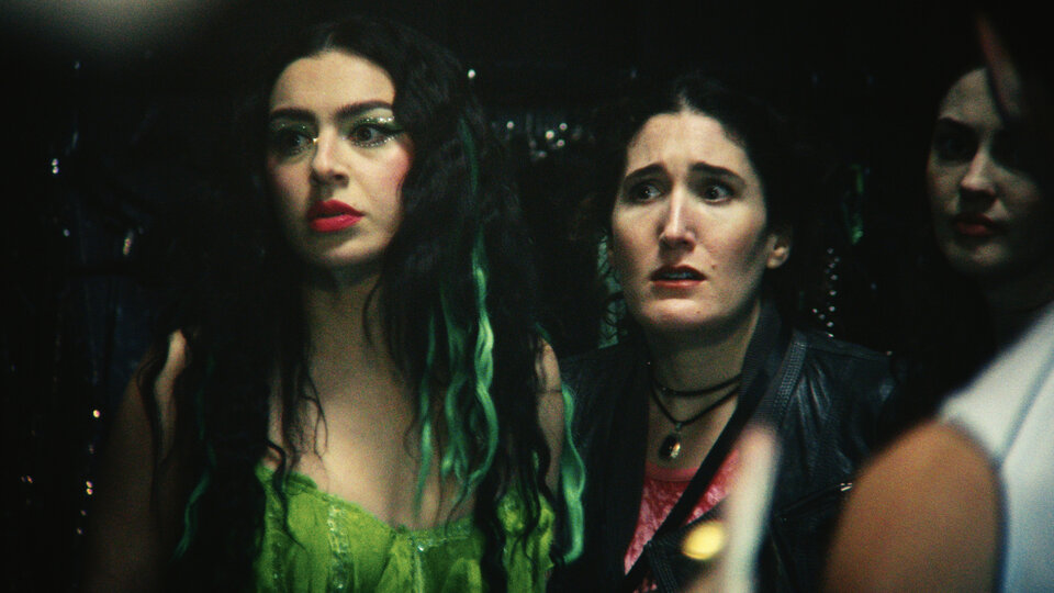 Снял «Момент» Эйдан Замири — фотограф, клипмейкер, давний соратник Charli XCX, а еще соавтор креативных кампаний Тимоти Шаламе по продвижению фильмов «Боб Дилан: Никому не известный» и «Марти Великолепный» (сумасшедший маркетинг последнего, превративший оранжевый в хит сезона, — в том числе дело рук Замири). В его культурном багаже и режиссерских способностях сомневаться не приходится. Понимая, что главная задача тут — посмеяться над почтенным жанром фильма-концерта, Замири, тем не менее, не делает вид, что является в этом деле первопроходцем. Мигающие неоновые титры он заимствует у Гаспара Ноэ, гротескную атмосферу творческой суматохи — у «Вечера трудного дня» Ричарда Лестера, где дурачились The Beatles (Замири, как и Чарли, родом из Великобритании). В фильме прямо упоминается и «Я все еще здесь» — гениальное в своей отбитости мокьюментари Кейси Аффлека о Хоакине Фениксе, который якобы переквалифицировался из актеров в хип-хоперы.
